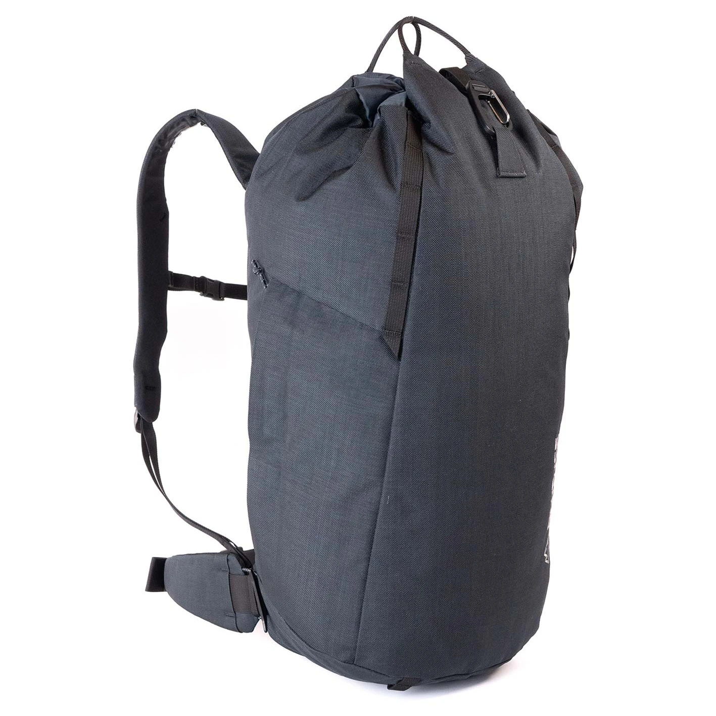 Der Wadi 32 von Blue Ice ist ein geräumiger Unisex-Kletterrucksack mit einem Fassungsvermögen von 32 Litern. Er besteht aus einem reißfesten Nylon-Material und eignet sich daher für strapaziöse Einsätze mit Felskontakt. Er hat eine bequeme verstärkte Rückenplatte und Schulterträger, die speziell für Kletterbewegungen optimiert sind. Die Schleifen und Bändern auf den Außenflächen sind auf das Nötigste reduziert, damit Du beim Klettern nirgends hängenbleibst. Oben ist ein kleiner Karabiner (2kN) und leicht zu klippende Zuggriffe angebracht. Inklusive sind Befestigungen für Eispickel und Helm. Ohne diese wiegt der Rucksack 600 Gramm; mit den zusätzlichen Halterungen 650 Gramm.