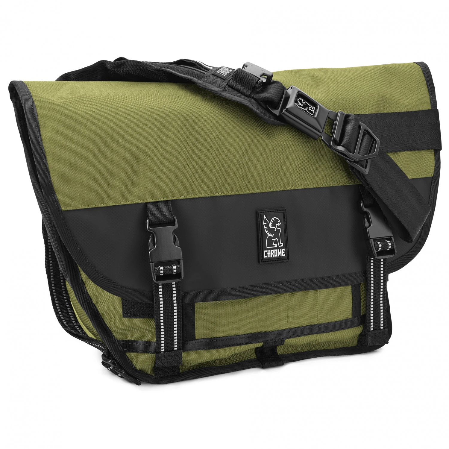 Eine gute Wahl für Bike-Pendler, aber auch sonst ein toller Begleiter im Alltag: Die Mini Metro Umhängetasche von Chrome. Durch ihr geräumiges Hauptfach kann man die Dinge des Alltags sehr gut darin unterbringen – es passt sogar ein Laptop bis 15′ hinein. Orga-Fächer helfen beim besseren Aufteilen des Gepäcks und in einer Trinkflasche ist Platz für eine solche. Das Hauptfach ist dank Taupalin-Auskleidung wasserdicht und die Außenseite aus robustem Nylon macht ordentlich was mit. Der Schultergurt kann auf die gewünschte Größe eingestellt werden und der kleine Brustriemen hilft dabei, die Tasche auf dem Rad besser zu stabilisieren. Zusätzlich sorgen reflektierende Elemente dabei, im Straßenverkehr schneller gesehen zu werden. Die Mini Metro Umhängetasche ist super ausgestattet und zeigt sich schnell als äußerst nützlich!