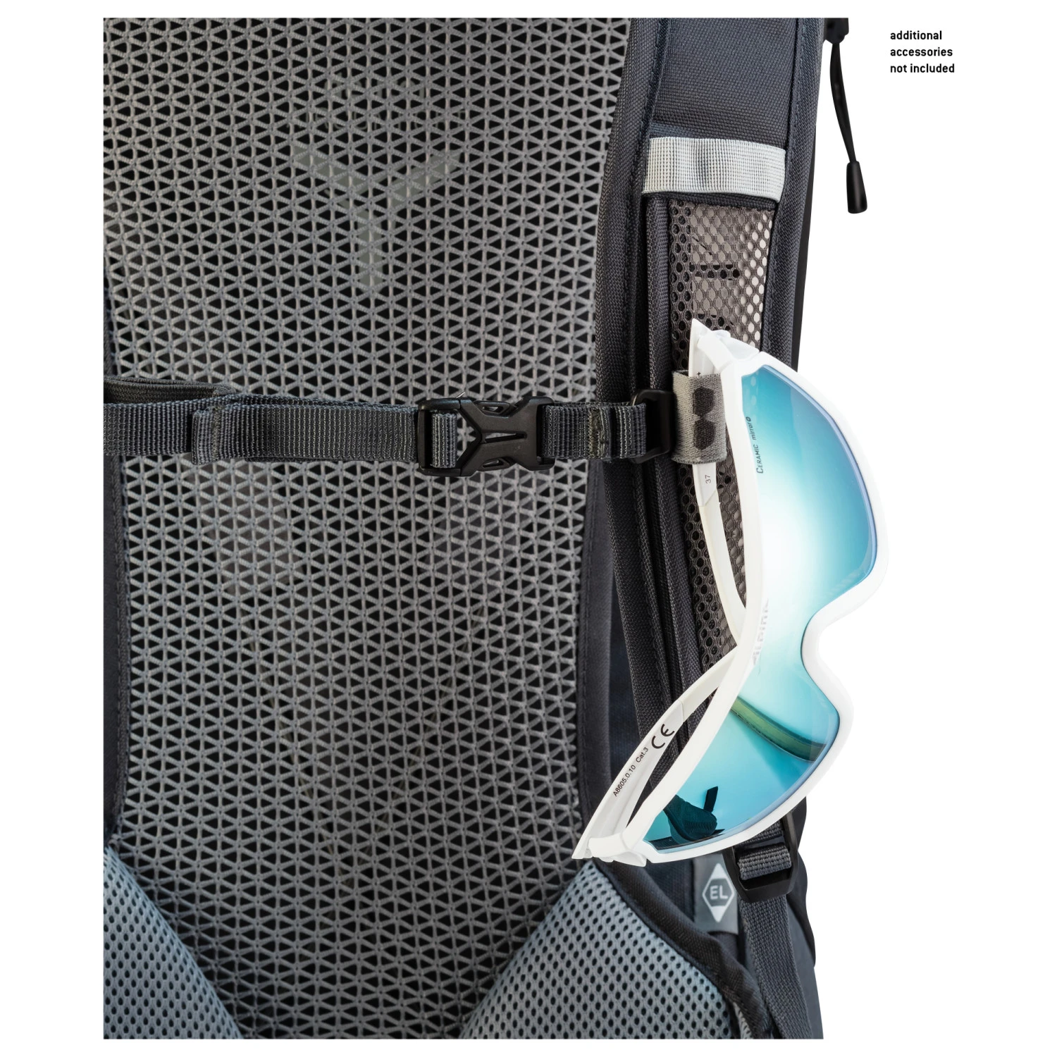Der AirComfort Lite 32 EL ist mit praktischen Features ausgestattet, sodass Du Dein Outdoor-Erlebnis auch tatsächlich genießen kannst, ohne ständig irgendetwas rumzuwursteln. Der Wanderrucksack ist mit einer 2-Liter-Trinkblase kompatibel, sodass Du während dem Laufen trinken kannst und nicht jedes Mal den Rucksack absetzen musst. Eine nützliche Stockhalterung, Schlaufen für die Helmhalterung sowie Brillenhalterung sind ebenfalls vorhanden wie ein Wertsacheninnenfach sowie ein weiteres Stretch-Innenfach. So kannst Du Deine Utensilien sinnvoll im Rucksack aufbewahren. Zudem kommst Du auch frontal durch den Reißverschluss ans Rucksack-Innere, was vor allem praktisch ist, wenn es mal schnell gehen muss. Falls es anfängt zu regnen, hilft Dir die Regenhülle, Deinen Inhalt trocken zu halten, während das SOS-Label alle wichtigen Rufnummern in Notfallsituationen parat hält. In den AirComfort Lite 32 EL wirst Du Dich spätestens während Deiner ersten Tour verlieben, versprochen!