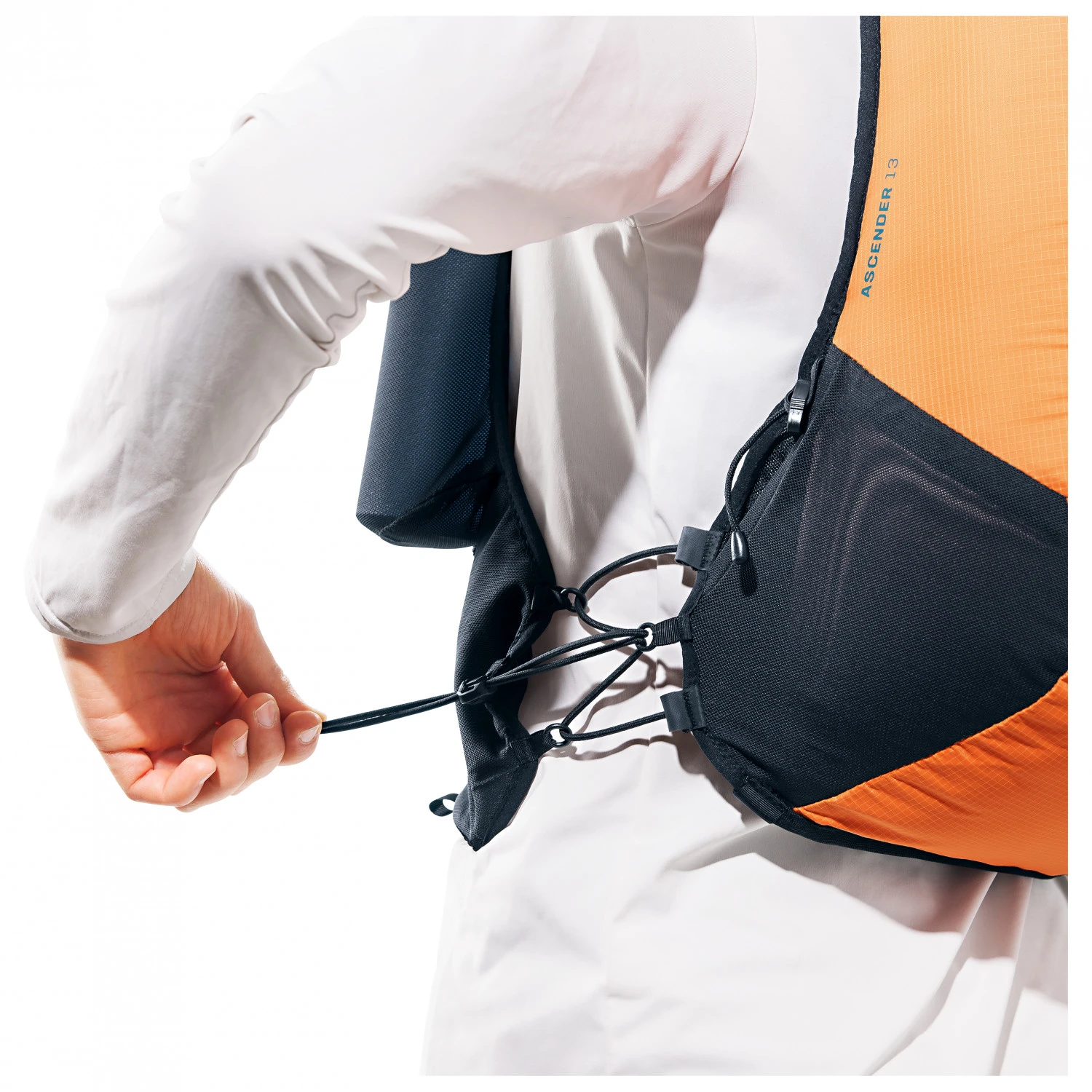Das Rucksackgewebe ist wunderbar reiß- und abriebfest. Der Innenraum packt bis zu sieben Liter ein und wird durch ein Wertsachenfach und ein Stretchfach im Innenbereich sowie zwei elastischen Seitentaschen und einer Tasche am Schulterträger fürs GPS oder Smartphone ergänzt. Damit Ihr beim Zugriff auf die Stockhalterung nicht aus dem Tritt kommt, ist diese leicht zugänglich vorne am Schulterträger platziert. Das softe Rückenteil passt sich wunderbar der Bewegung an. Zur Gewichtsersparnis könnt Ihr übrigens den Rückenschaum bei Bedarf entfernen, was den Ascender 7 nochmals um rund 10% leichter macht. Top!