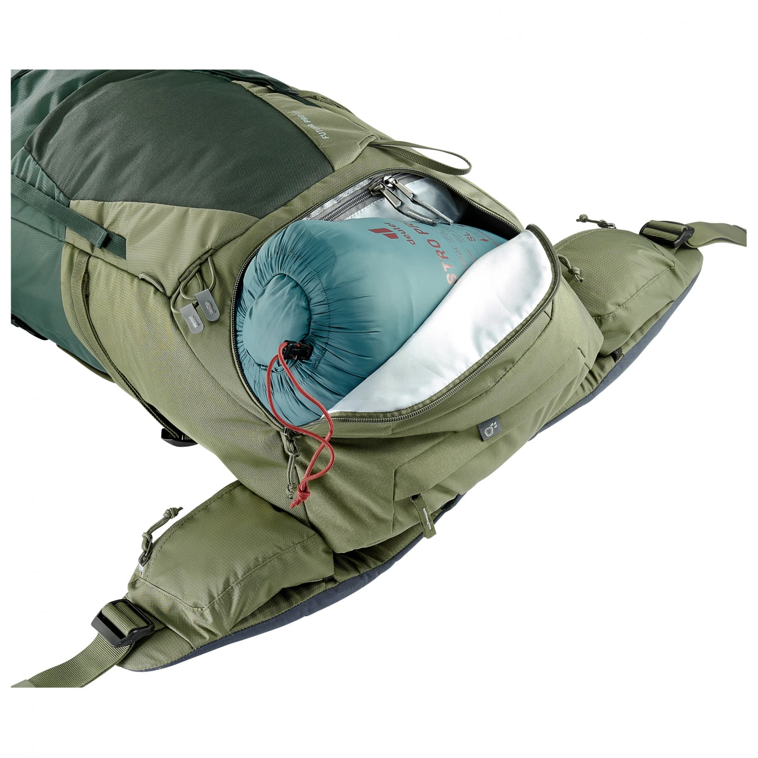 Neben dem geräumigen Hauptfach besitzt der Futura Pro eine geräumige Deckeltasche, ein separates Bodenfach für schmutzige Wäsche beispielsweise, ein Stretch-Innenfach, seitliche Balgtaschen, ein Wertsacheninnenfach, zwei geräumige Hüfttaschen und zwei elastische Seitentaschen. Außerdem gibt es Schlaufen für eine Helmhalterung sowie eine Halterung für Eispickel oder Trekkingstöcke. Praktisch ist zudem, dass der Wanderrucksack kompatibel mit Trinkblasen bis zu drei Litern ist (Trinkblase nicht im Lieferumfang enthalten).