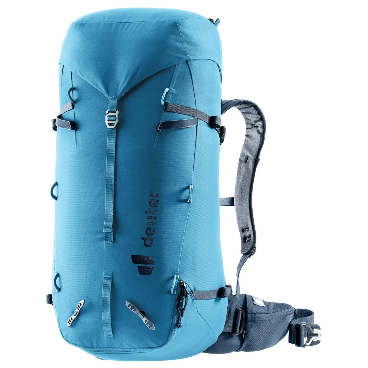 Der Guide 34 + 8 von Deuter eignet sich optimal zum Bergsteigen, für Hochtouren sowie für alpine Kletterrouten. Durch den abnehmbaren Hüftgurt engt Dich der Tourenrucksack beim Klettern am Fels nicht ein. Die beweglichen Hüftflossen sind weich gepolstert und passen sich dank des VariQuick Systems bei jeder Bewegung an Deine Taille an. Der Wanderrucksack ist mit einem herausnehmbarem Rahmen konstruiert, welcher beim Zustieg zur Tour für eine optimale Verteilung des Gewichtes sorgt. Dein Kletterseil kann bequem auf der Oberseite befestigt werden. Dank der Materialschlaufen kannst Du Ausrüstung außen am Rucksack befestigen.
