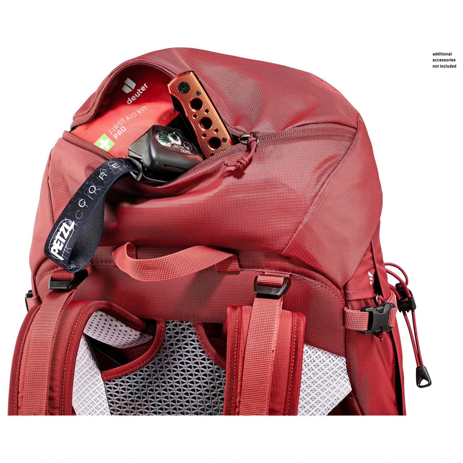 Optimal eignet sich der Women’s Futura Pro 34 SL Wanderrucksack von Deuter für Mehrtageswanderungen, bei denen geringes Gewicht und ein hoher Tragekomfort eine wichtige Rolle spielen. Mit seinen weichen und bequemen Schulter- und Hüftträgern gelingt es dem Futura Pro mit Leichtigkeit sich auch bei vielen Stunden auf dem Rücken der Trägerin angenehm an den Körper anzuschmiegen. Da der Rucksack dank des ausgeklügelten Belüftungssystems nicht direkt am Rücken anliegt, kann die Luft dauerhaft zirkulieren. Ein unangenehmes Tragegefühl bei schweißtreibenden Bedingungen gehört mit dem Futura Pro 34 SL der Vergangenheit an.