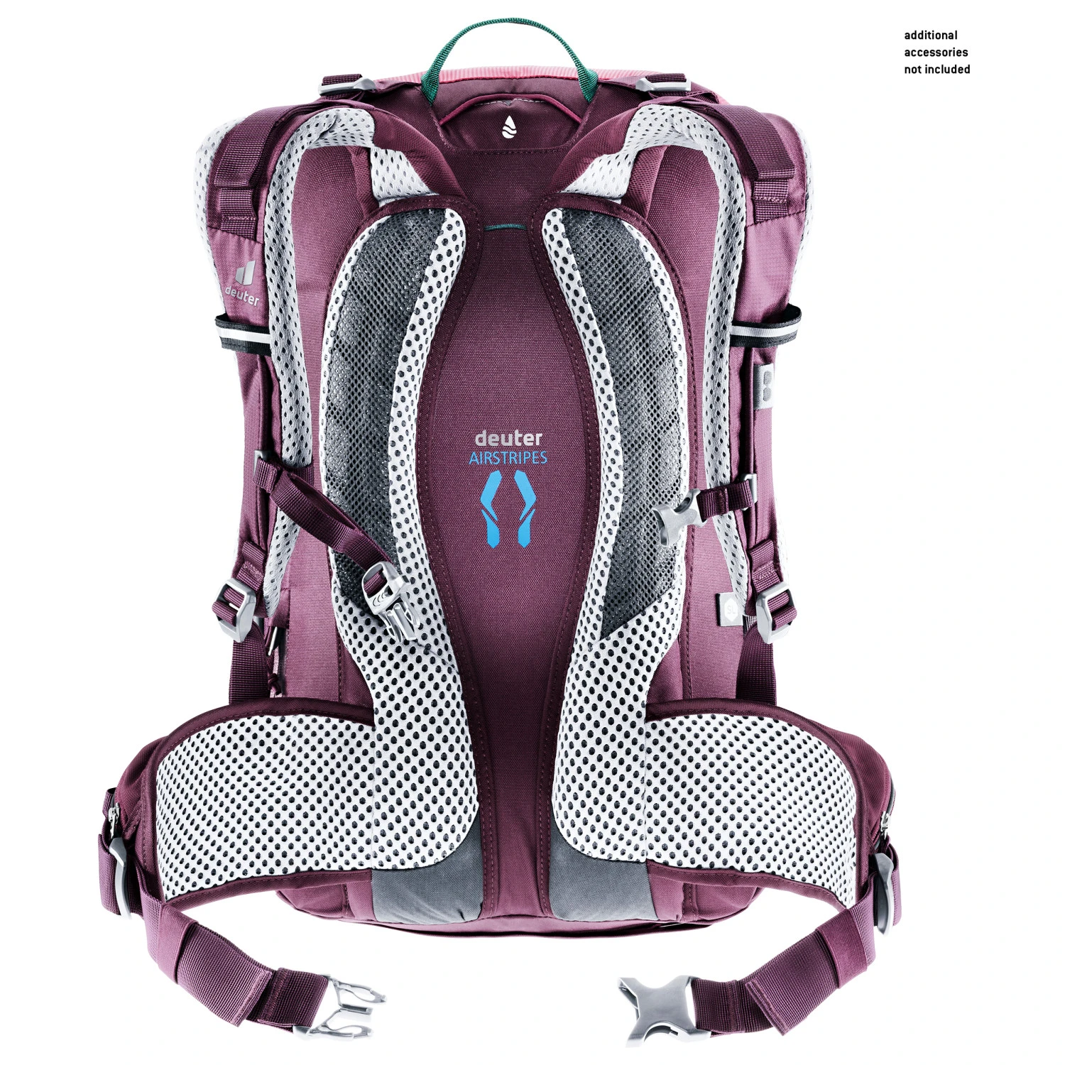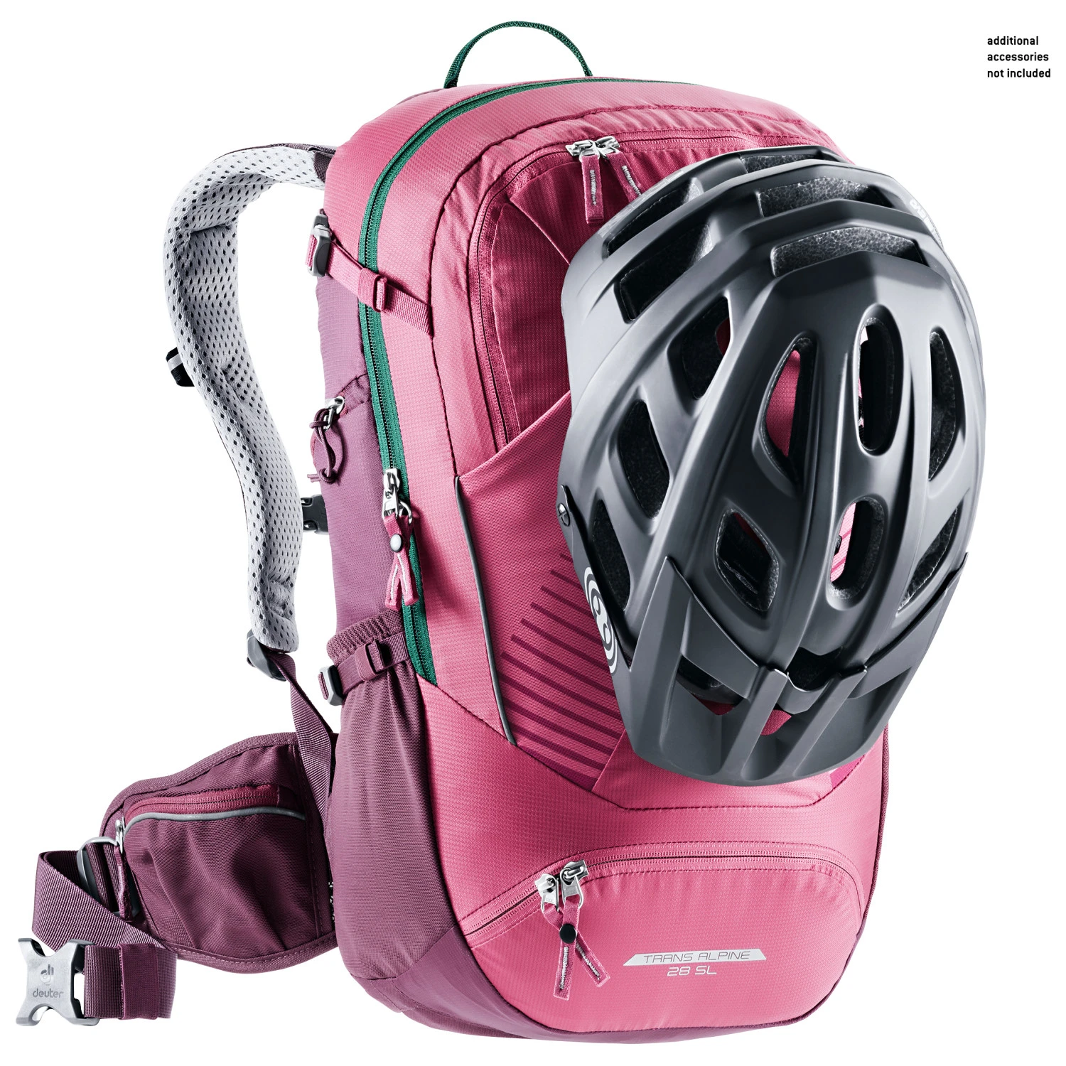 Mit seinen vielen Fächern und Verstaumöglichkeiten bietet der Women’s Trans Alpine Bikerucksack von Deuter eine enorme Flexibilität auf verschiedensten Touren. Werkzeug, die Luftpumpe, das Smartphone und sogar der Schlüssel haben ein spezielles Fach, damit zeitintensive Suchen erspart bleiben. Das bequeme und leichte Tragesystem passt sich hervorragend an den Körper an und sitzt auch bei langen Einsätzen gemütlich auf dem Rücken. Das Hauptfach ist unterteilbar. So kann auch im großen Aufbewahrungsraum des Rucksacks eine Trennung des Gepäcks stattfinden. In den elastischen Seitentaschen finden Kleinigkeiten einen tollen Ort, die unterwegs schnell griffbereit sein sollen.