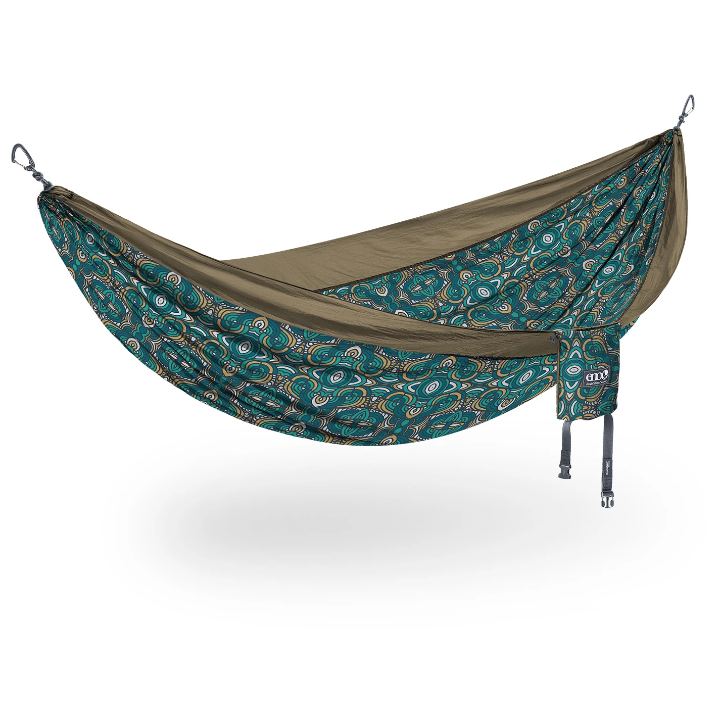 Die DoubleNest Print – Giving Back Hängematte von ENO sieht schon auf den ersten Blick nach einer Einladung zum Kuscheln aus. Die hochwertigen Materialien der Hängematte schmiegen sich angenehm weich an die Haut an. Gleichzeitig schrecken die robusten Fasern nicht vor einem Einsatz an der frischen Luft zurück und sind zudem strapazierfähig. Hier setzt ENO auf eine besondere Fadenkonstruktion, um Beschädigungen zu verhindern. So kannst Du Dich voll und ganz entspannen und musst Dir keine Gedanken über die Tragfähigkeit der Hängematte machen. Die Hängematte ist so geräumig, dass zwei Personen locker Platz darin finden. So kannst Du mit Deinem Partner oder Deiner Partnerin gemütlich in den Tag starten, oder ihn gemeinsam ausklingen lassen.