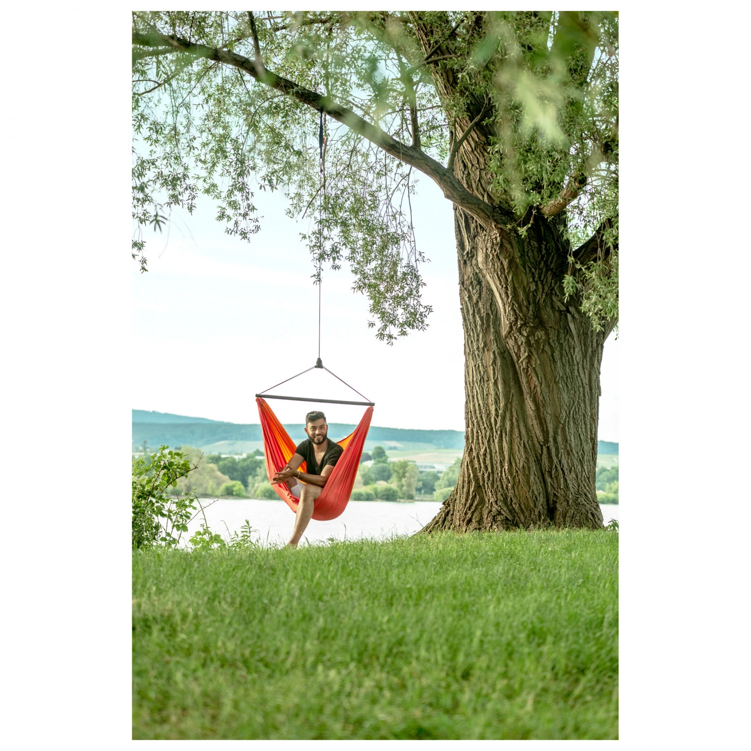 Mit dem ZunZun von La Siesta wird jeder Ort zur Cillout-Area. Alles, was hierfür benötigt wird, ist ein Ast oder Balken mit einer Mindesthöhe von 200 cm. An diesem wird der Hängestuhl mit der integrierten Halterung mit wenigen Handgriffen befestigt. Der ZunZun besteht aus leichtem, dünnem Material und bietet eine extrem große Sitzfläche. Sogar ein entspanntes Liegen ist in ihm möglich. Durch das kleine Packmaß kann er auch ideal mit in den Campingurlaub oder auf die Reise genommen werden.