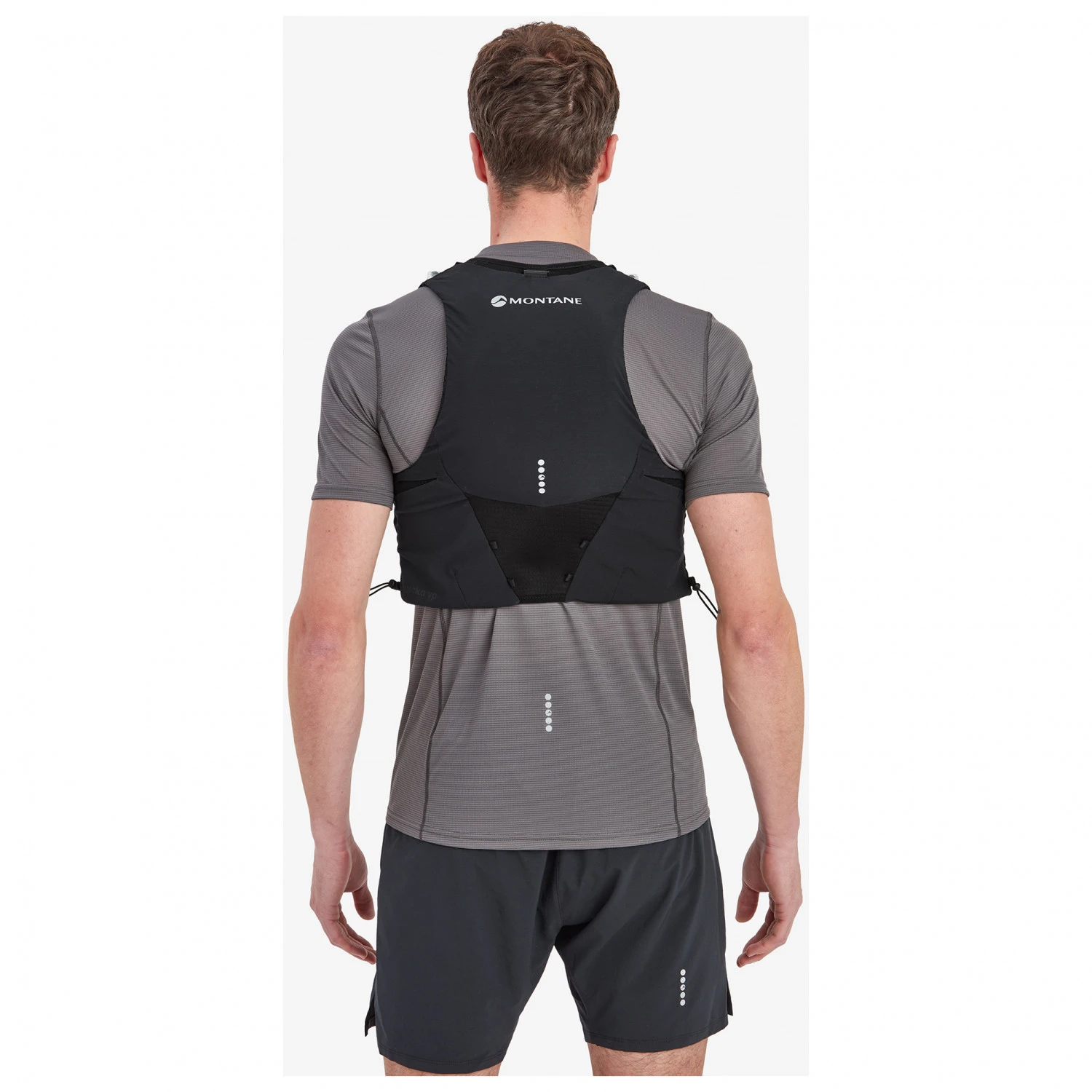 Die abnehmbare Signalpfeife und das ergonomische Tragesystem mit drei verstellbaren Brustgurten lassen keine Wünsche offen. Mehrere Taschen auf der Vorderseite und seitlich bieten Dir viel Stauraum für zusätzliche Ausrüstung, Verpflegung und Dein Smartphone. Im großen Innenfach befindet sich eine kleine Tasche für Schlüssel, Bargeld oder Karten. Der Montane Gecko VP + Trailrunningrucksack wird mit zwei UltraFlask Faltflaschen geliefert.