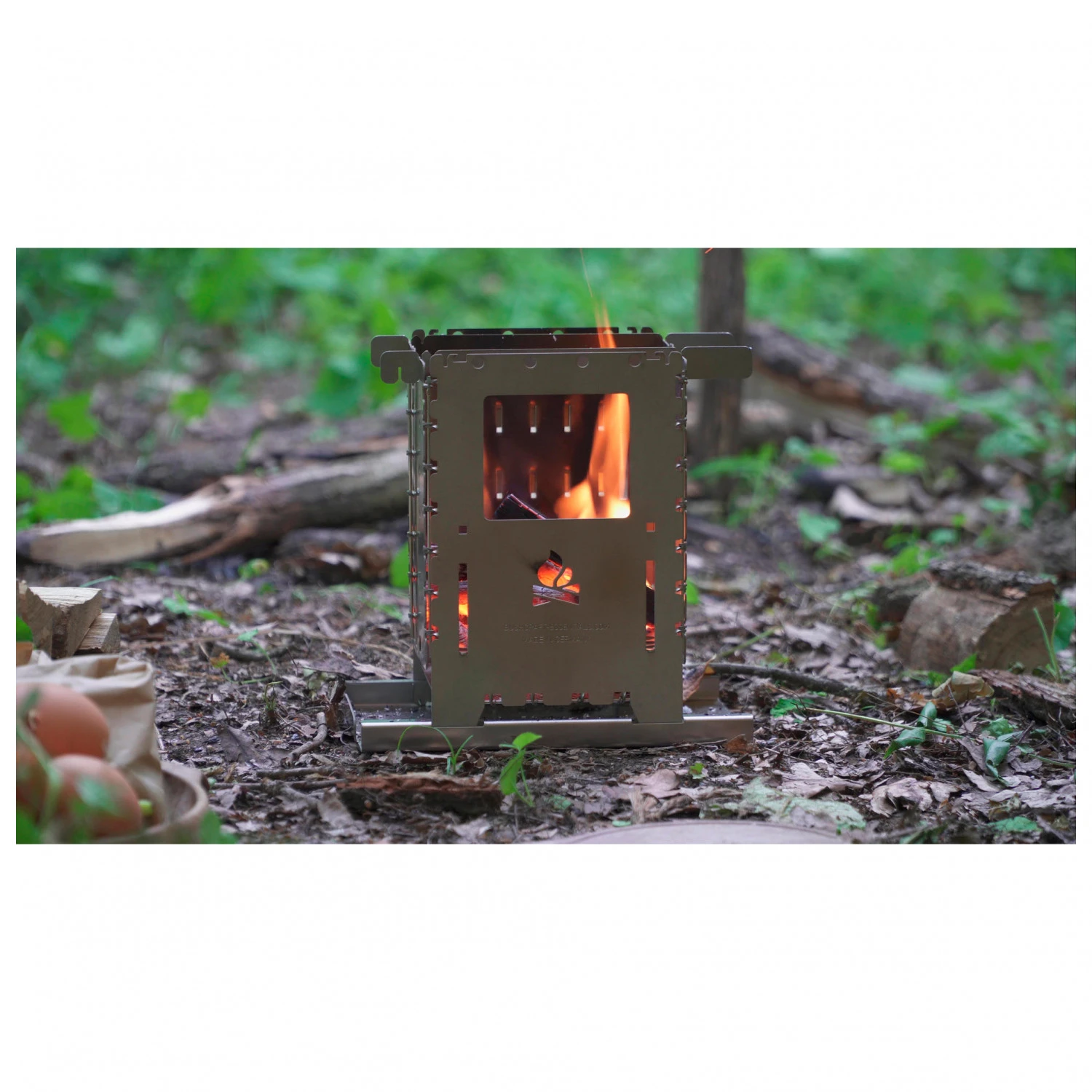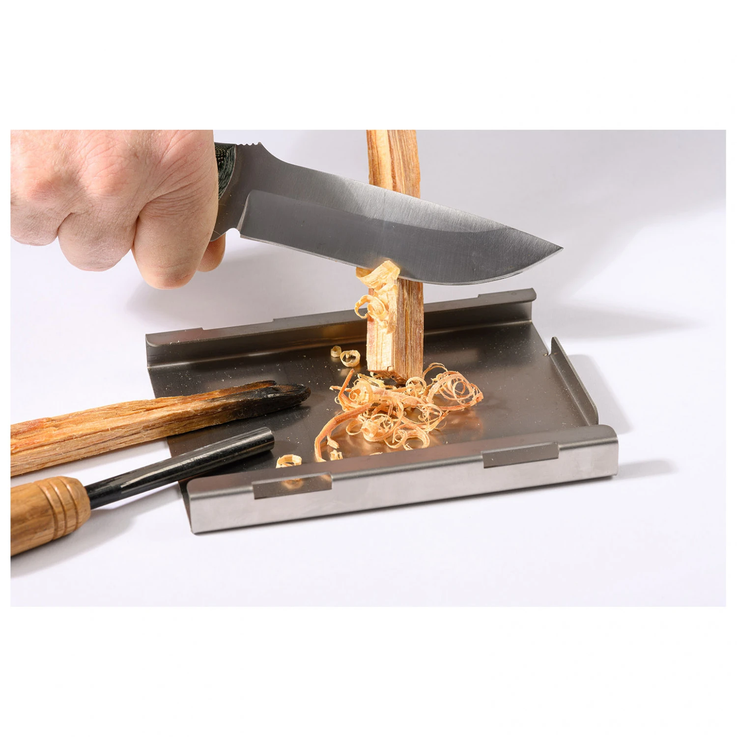 Das Multifunktions-Einschubgehäuse aus Edelstahl liefern Bushcraft Essentials als Zubehör zum Bushbox XL-Hobokocher. Die zerlegte Bushbox lässt sich kinderleicht in dem Gehäuse verstauen und ist dann sauber, kompakt und platzsparend transportierbar. In der Wildnis kannst Du das Einschubgehäuse dann als Arbeitsunterlage beim Schneiden von Feathersticks nutzen, aber es dient auch als stabile Unterlage für den Kocher, gern auch auf unebenen Untergründen wie Sand oder Schnee.
