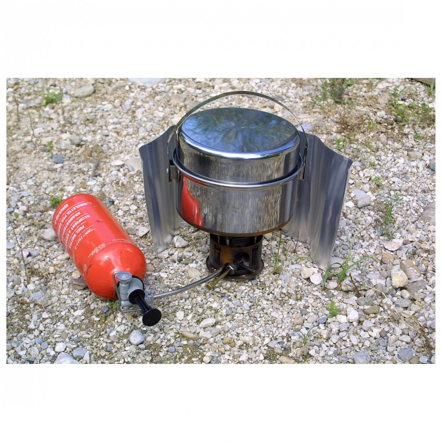 Damit Kocher und Flamme vor Wind geschützt sind, hilft der Alu Windschutz Rollbar von Origin Outdoors. Er ist schön leicht und kann platzsparend zusammengerollt werden. Dadurch passt er prima in den Rucksack und ist schnell einsatzbereit. Er ist in zwei Varianten vorhanden, um auch größeren Kochern gerecht zu werden.