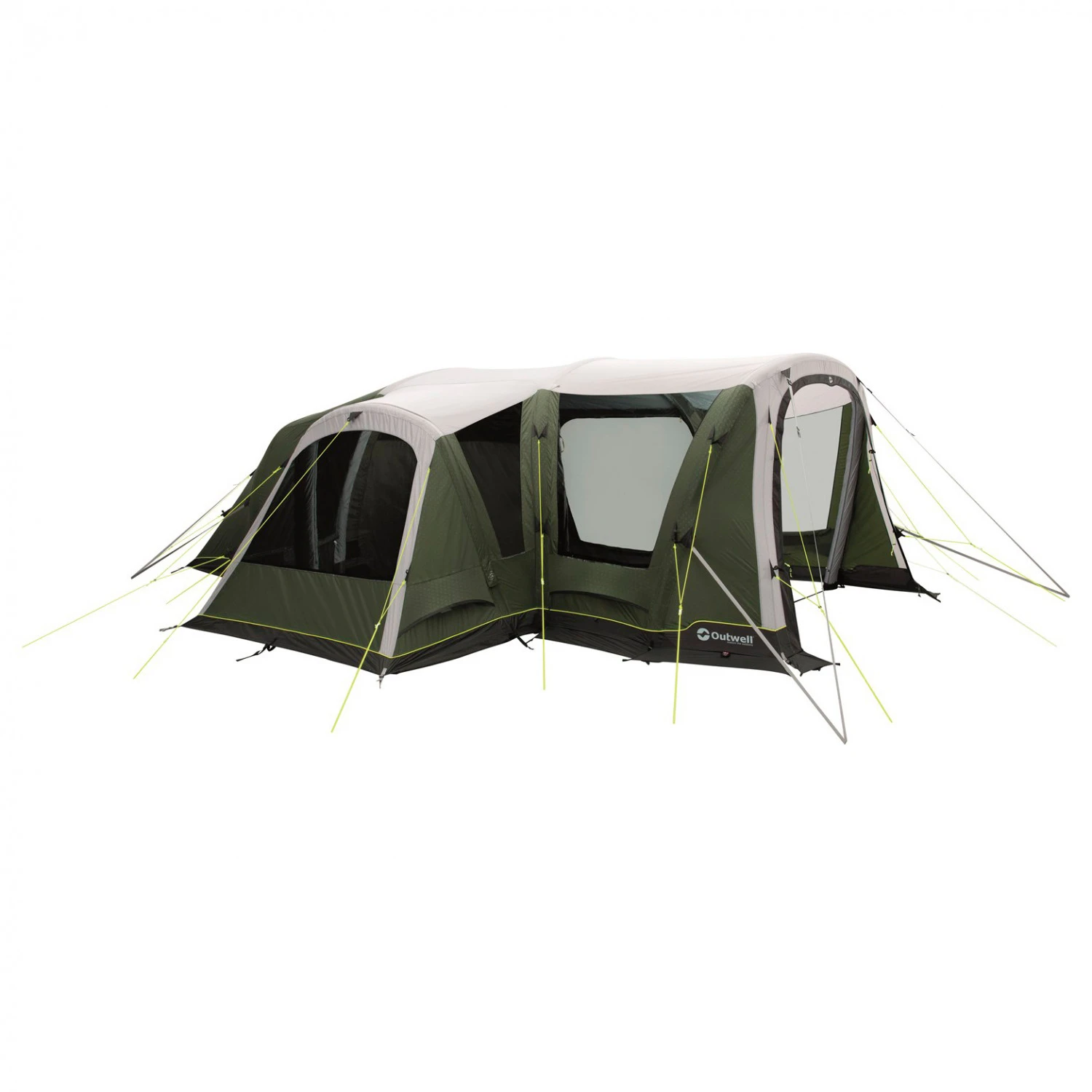 Die Konstruktion lässt sich mit der mitgelieferten Pumpe schnell aufpumpen, was Zeit und Arbeit spart. Die auftretenden Kräfte bei Wind und Böen werden mit Hilfe von Abspannleinen auf das gesamte Zelt verteilt, damit dieses sicher steht. Auch an windigen Tagen kann man sich entspannt in Zelt aufhalten. Das Oakdale ist der ideale Partner für entspannte Campingtrips!