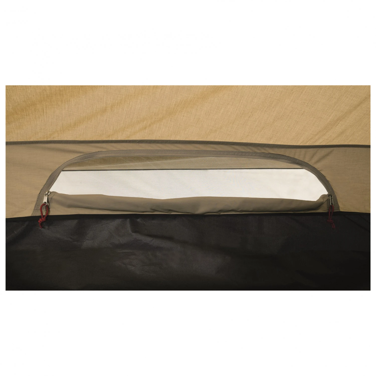 Das einwandige Zelt ist aus dem robusten HydroTex Polycotton Gewebe gefertigt. Das leistungsstarke Mischgewebe aus leichter Polyesterfaser und Baumwolle ist reiß- und abriebfest, wunderbar atmungsaktiv und dank langanhaltender DWR dauerhaft wasserabweisend. Der eingenähte Zeltboden geht über den gesamten Zeltbereich und kommt verfügt über eine Wassersäule von satten 10.000 mm. So bleibt auch hartnäckige Untergrundnässe draußen.
