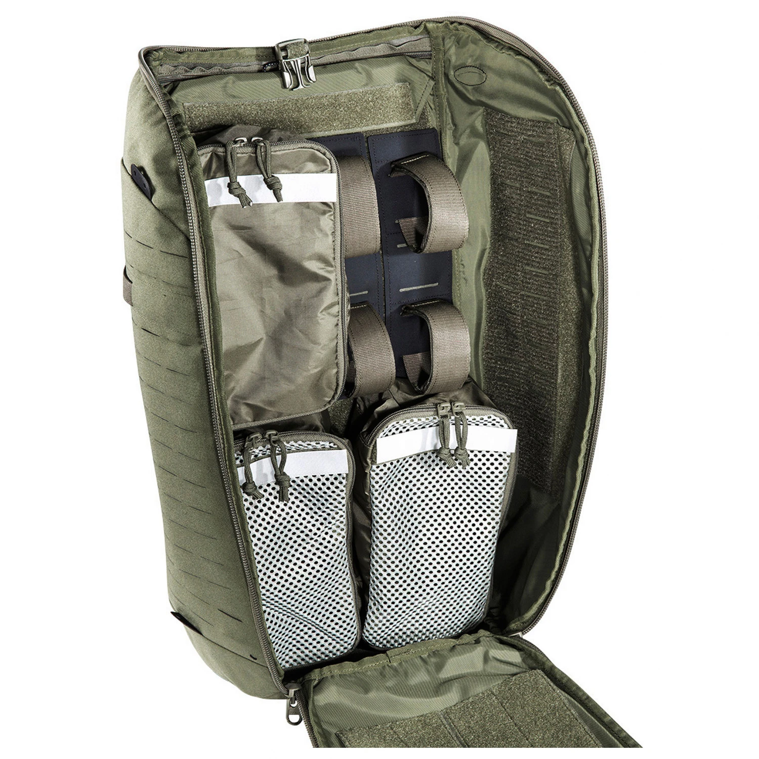 Der vollausgestattete Rucksack verfügt über einen Frontzugriff, damit man Zugang zum kompletten Gepäck hat. Der Deckel mit Fach lässt sich in der Höhe verstellen, so dass sich der Rucksack unkompliziert erweitern kann. Dank Molle-System lassen sich weitere Taschen schnell anbringen. Die drei mitgelieferten Klettverschlusstaschen sorgen für mehr Ordnung. Die Fronttasche lässt sich abnehmen und zusammen falten. Innenliegende Kompressionsriemen halten die Ladung stabil. Mit dem robusten Material ist der TT Modular ein langlebiger Partner für Outdoorer mit hohen Ansprüchen und den Einsatz bei taktischen Einsätzen!