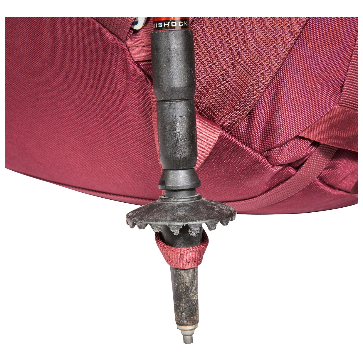 Auf das Equipment im Hauptfach hat man über den höhenverstellbaren Deckel und den Frontreißverschluss einfachen Zugang. Ein zusätzliches Bodenfach, Deckelfach und verschiedene seitliche Taschen erweitern den Stauraum praktisch und sorgen für Überblick. Auch eine Trinksystemvorrichtung und Trekkingstockhalterung ist vorhanden. Hardware befestigt man an den Materialschlaufen. Mit dem Women’s Yukon X1 65+10 sind Trekkerinnen ideal für ambitionierte Touren ausgeüstet!