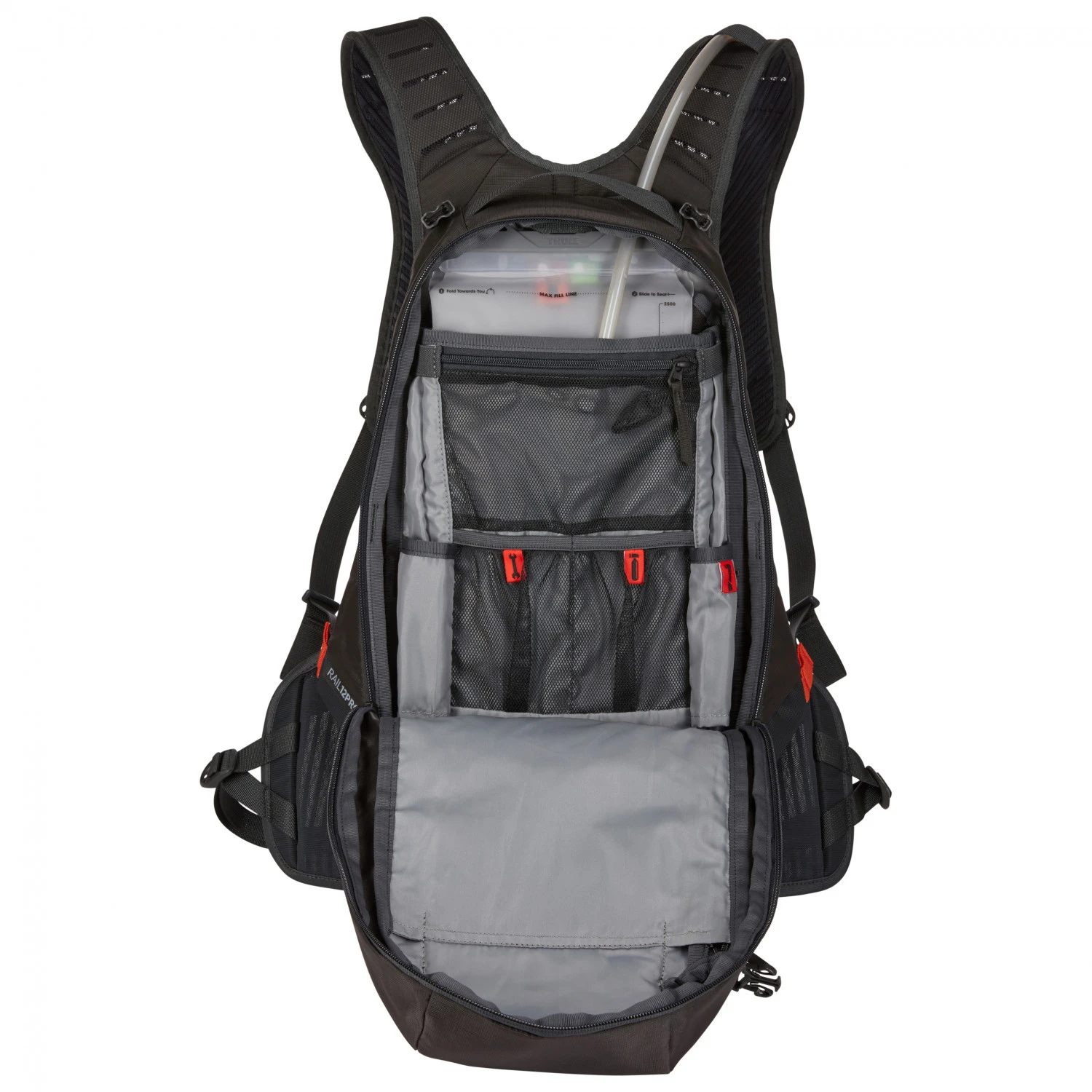 Der Rail Pro Bike Hydration 12 Bike-Rucksack von Thule überzeugt mit einem tollen Tragekomfort und sportlichem Design. Der Rucksack ist neben Schulterträgern mit einem Hüft- sowie einem Brustgurt ausgestattet. Dadurch ergibt sich ein funktionelles Tragesystem, welches den Bike-Rucksack eng am Körper hält. Dadurch schmiegt sich der Rail Pro Bike Hydration 12 perfekt an den Rücken an und stört nicht durch unkontrolliertes Hin- und Herfliegen. Auch auf den anspruchsvollsten Trails spürt man dadurch kaum, dass man einen Rucksack trägt. Doch auch beim Rennrad-, Tourenrad- oder Gravelbike fahren ist man mit diesem Rucksack sehr gut beraten.
