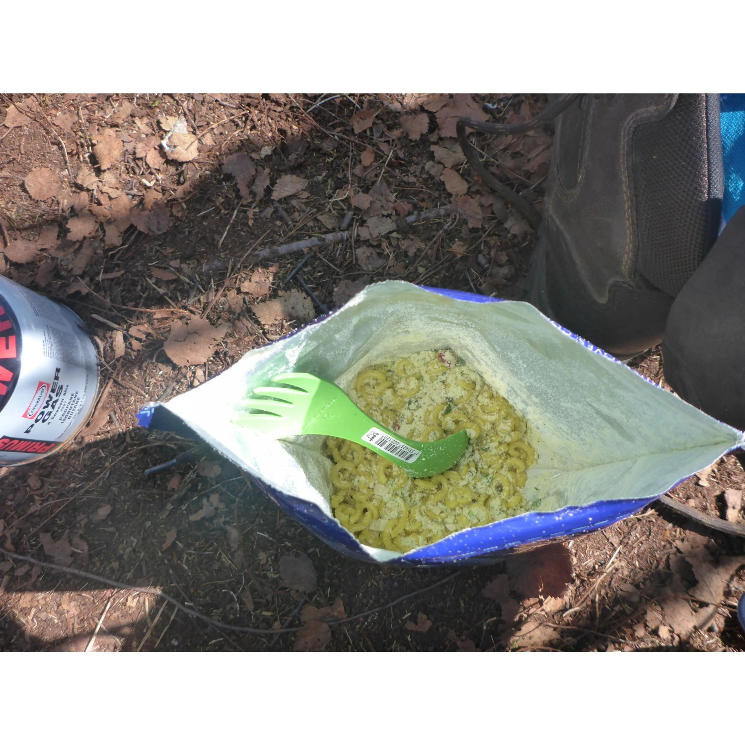 Ideal für lange Touren, Expeditionen oder Seereisen: gefriergetrocknete Outdoornahrung von Trek’n Eat – die spart Platz im Gepäck, macht aber richtig satt! Die Zubereitung ist besonders einfach und kostet kaum Zeit, so dass der Energienachschub an anstrengenden Tourentagen schnell wieder gedeckt werden kann. Die Gerichte sind energiereich und ausgewogen, um die Energiereserven mit möglichst wenig Aufwand und Masse schnell wieder zu füllen – also ideal für Gebiete, in denen die nächste Hütte oftmals ein paar Tagesmärsche entfernt liegt. Für die Trek’n Eat Produkte wird den Nahrungsmitteln durch Gefriertrocknung der Wasseranteil entzogen, wodurch die Zutaten extrem leicht und sehr haltbar werden – Vitamine und Mineralstoffe bleiben dabei aber erhalten. Und ob man’s glaubt oder nicht: die Gerichte von Trek’n Eat schmecken dabei auch noch richtig gut! Um die Energiereserven wieder aufzufüllen, sind die Sahnenudeln mit Hühnchen und Spinat genau richtig! Das leckere Nudelgericht ist schnell zubereitet (einfach angegebene Menge heißes Wasser dazu geben und ziehen lassen) und schmeckt. Für eine Person reicht gut die 150 g Packung (Verzehrmenge = ca. 640 g) – da wird jeder satt und der nächste Tag kann kommen! Zutaten: Nudeln [(50%), Hartweizengrieß, Eiweiß, Salz], Maltodextrin, modifizierte Stärke, Palmfett, Weizenmehl, Milchzucker, 4% Hühnerbrustfleisch (mit Antioxidationsmittel: Rosmarinextrakt), 3% Sahne, Hühnerfett, Speisesalz, Würze, natürliches Aroma, Tomaten, Zwiebeln, Mais, Spinat, Milcheiweiß, Hefeextrakt, Verdickungsmittel: Guarkernmehl, Xanthan; Gewürze, Raucharoma. Fleischeinwaage trocken: 6 g (entspricht ca. 21 g Frischfleisch).