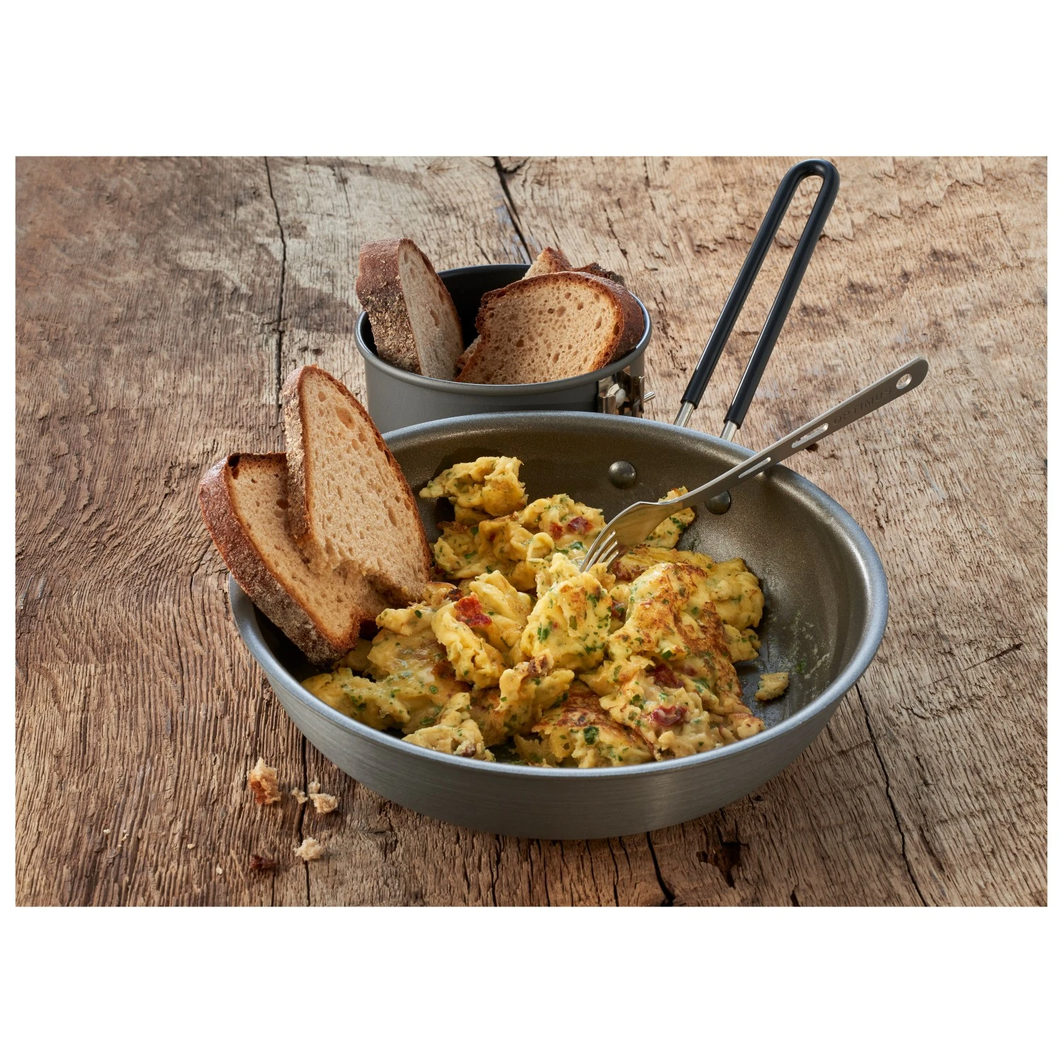 Die Bergfreunde wünschen einen guten Appetit mit der glutenfreien Expeditionsnahrung Rührei mit Zwiebeln von Trek’n Eat. Inhalt einfach anrühren und in der Pfanne anbraten. Fett ist hierzu nicht notwendig. So schmecht das als Frühstück oder Abendessen.